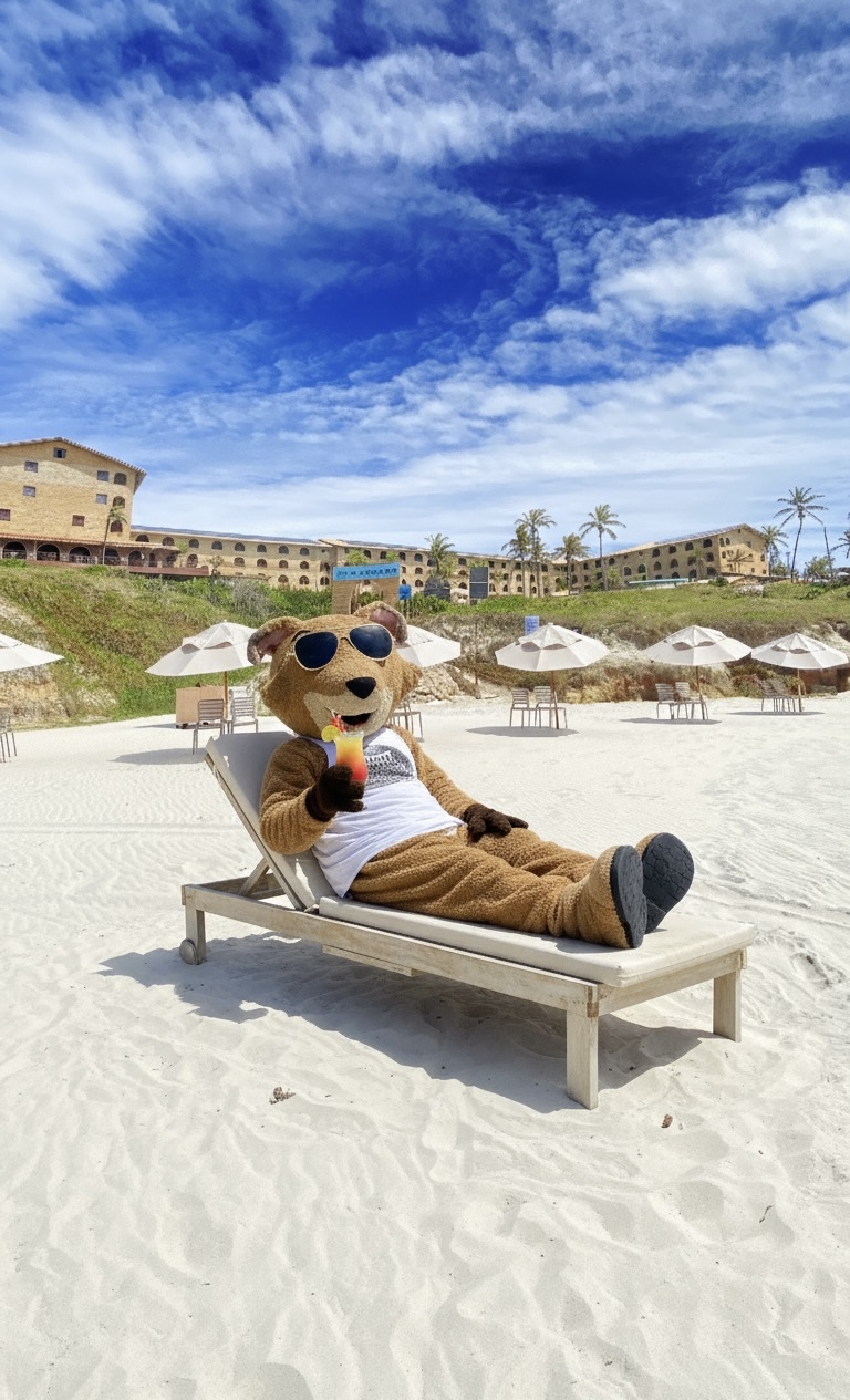 E quem aparece para deixar o momento ainda mais especial é o Romeu, nosso mascote, que simboliza a alegria de estar aqui. Porque no Coliseum Beach Hotel cada detalhe é pensado para transformar o seu lazer em lembranças que ficam para sempre.💙
